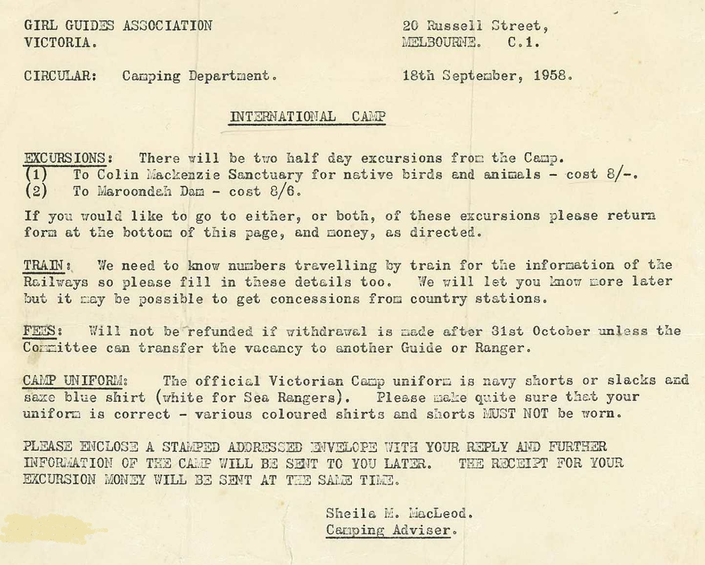 Australian International Camp – Circulars