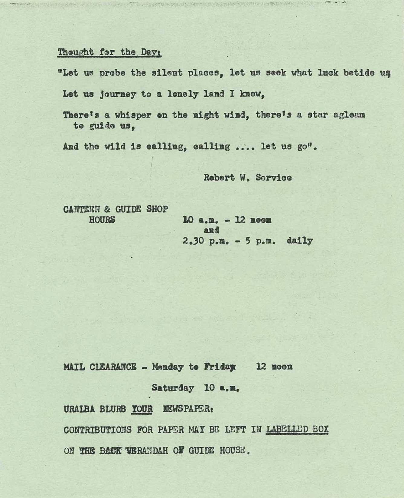 Camp Uralba – Blurb 6 January