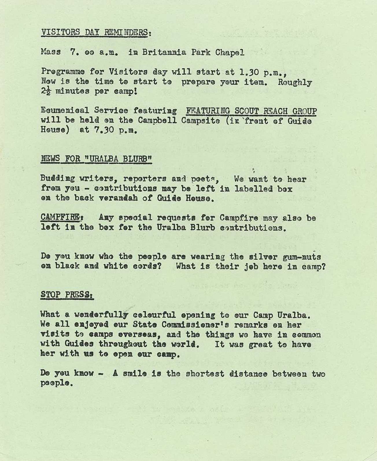 Camp Uralba – Blurb 7 January