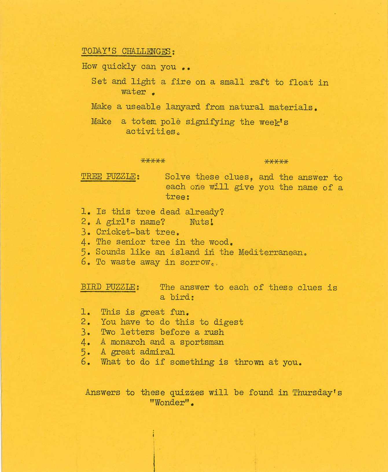 Camp Wirake 1973 – Wirake Wonder 10 January